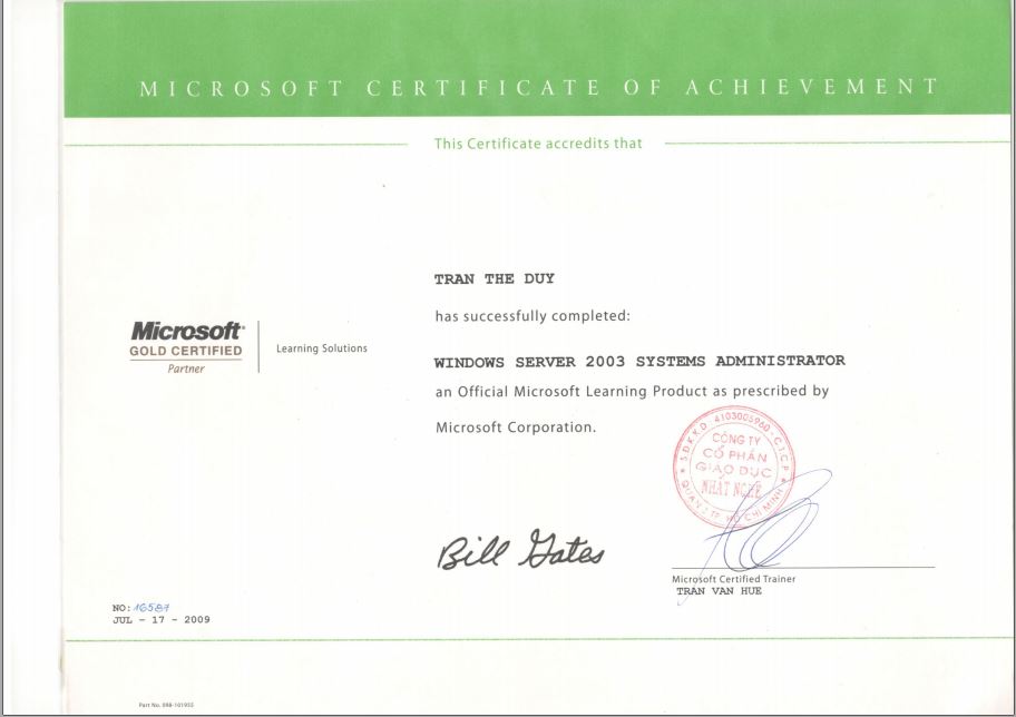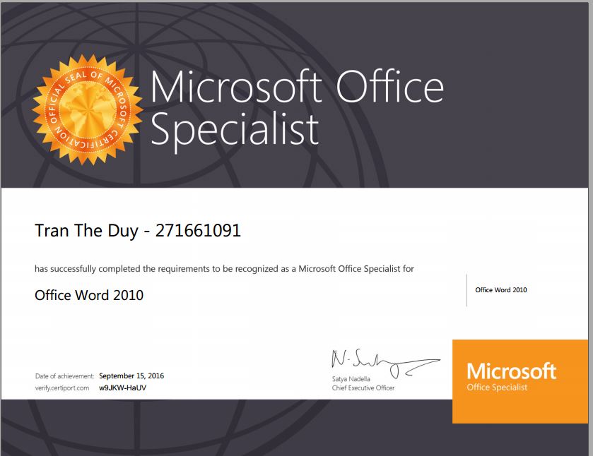 - Chứng chỉ quốc tế IC3-GS4, MOS Master(cao cấp toàn diện bên lĩnh vực tin học văn phòng)